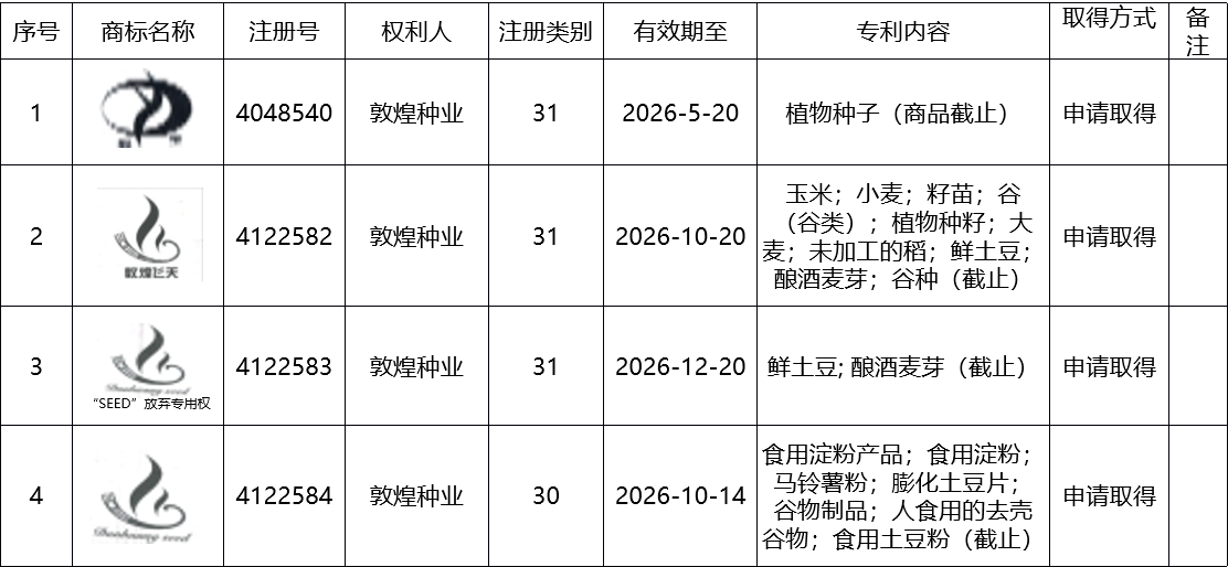 甘肅省敦煌種業(yè)集團股份有限公司商標(biāo)續(xù)展詢價公告